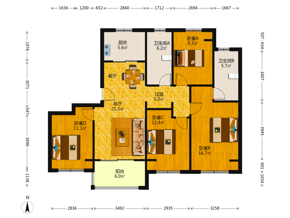 4室2厅2卫1厨1阳