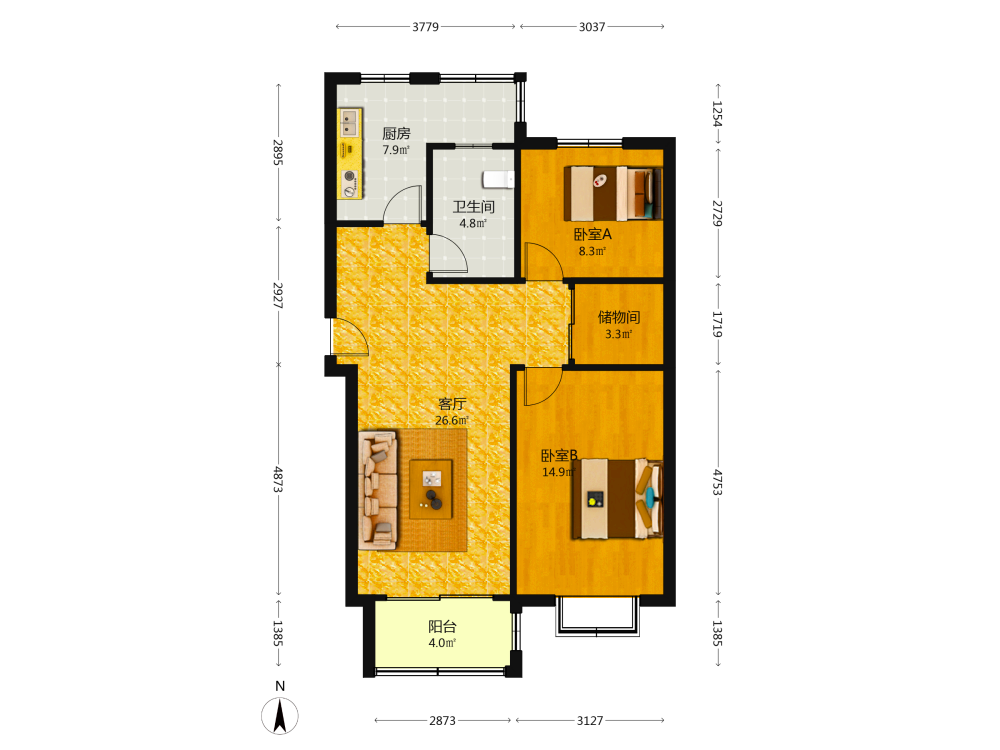 2室2厅1卫1厨1阳