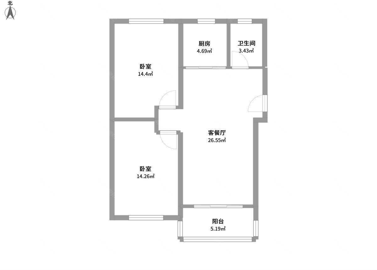 2室1厅1卫1厨1阳