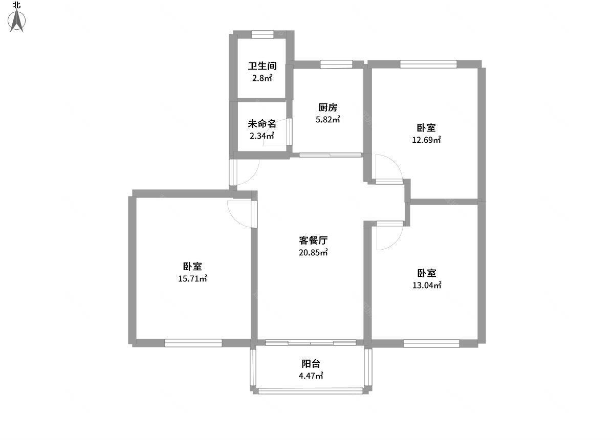 3室2厅1卫1厨1阳