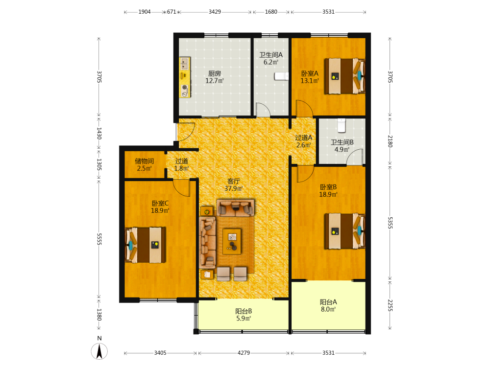 134.9平米