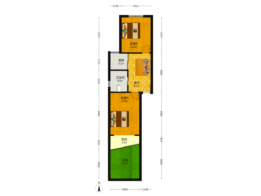 2室1厅1卫1厨1阳