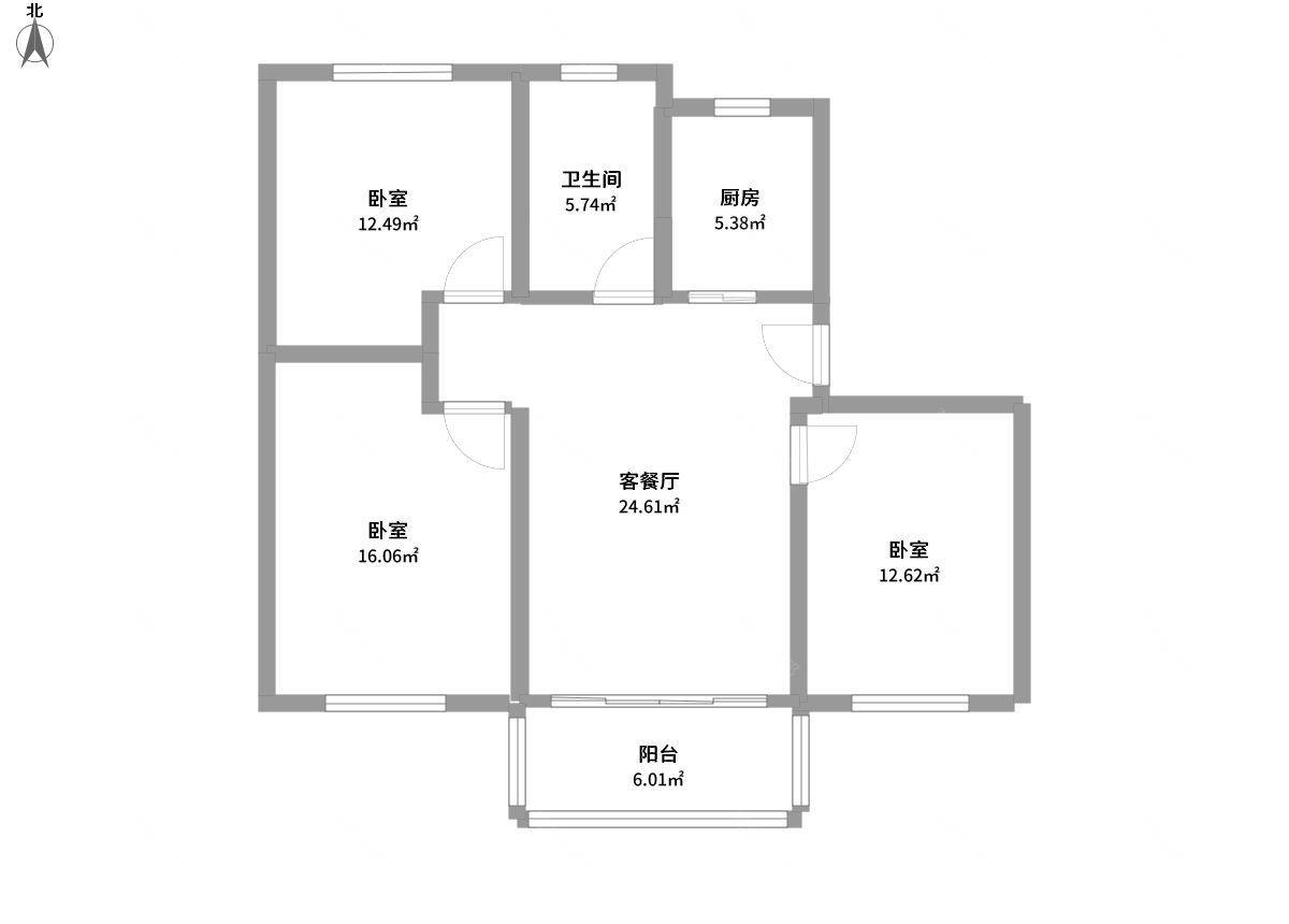 3室1厅1卫1厨1阳