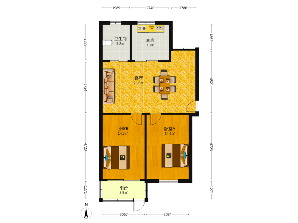 2室2厅1卫1厨1阳