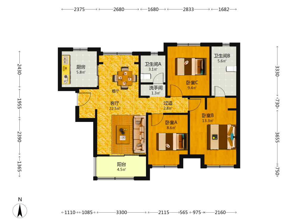 3室2厅