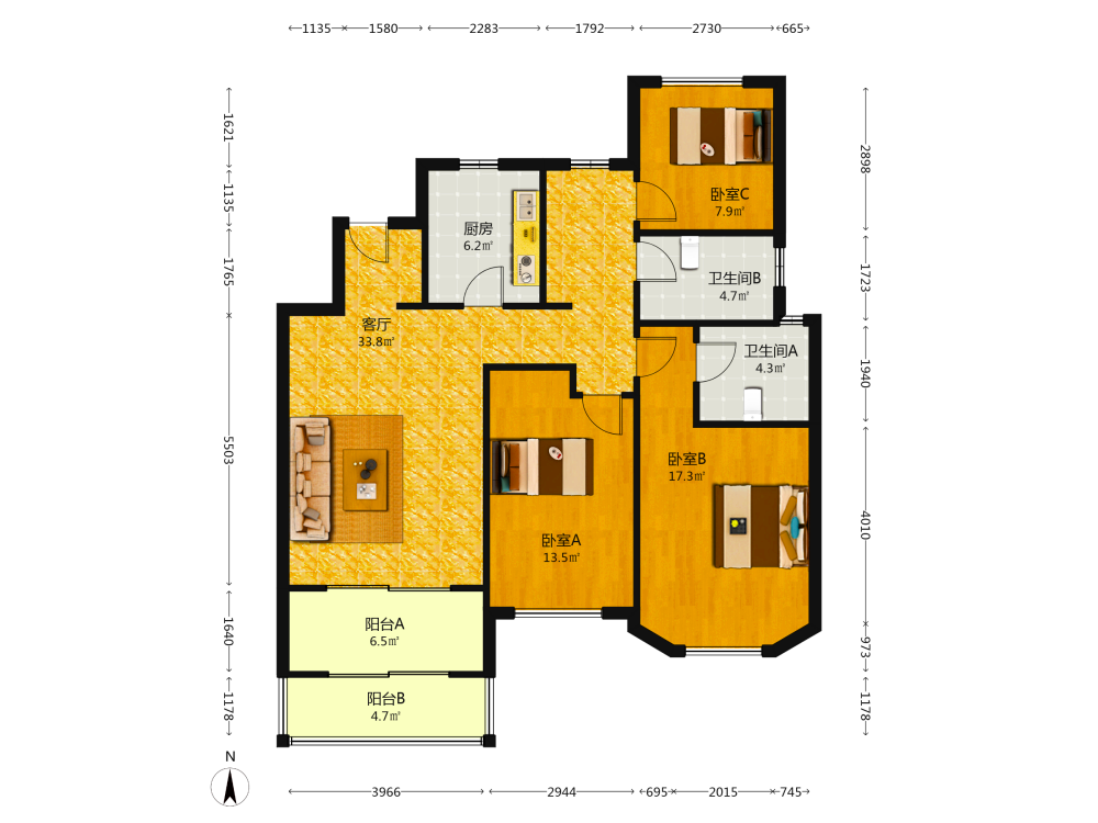金地艺境(松江) 3室2厅 109平米 409万出售