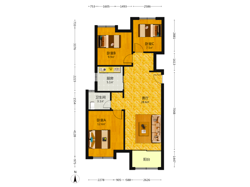 绿地海珀佘山 3室1厅 88平米 198万出售