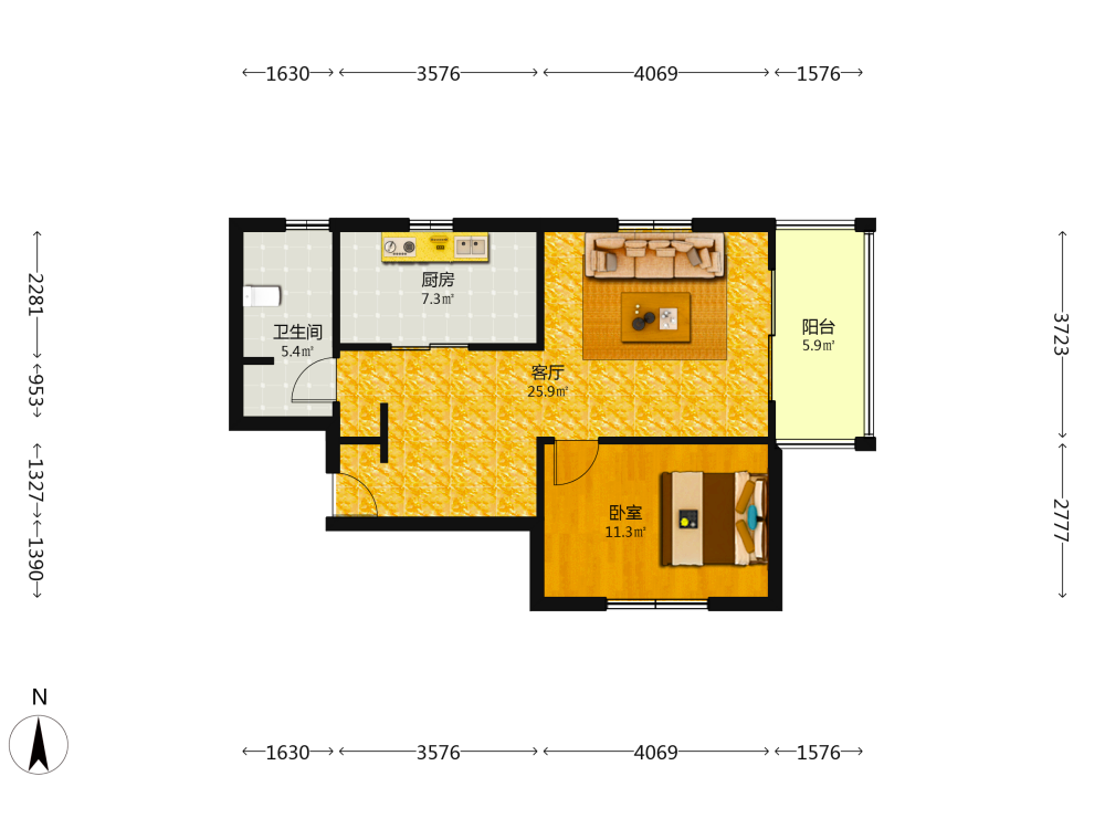 2室2厅1卫1厨1阳