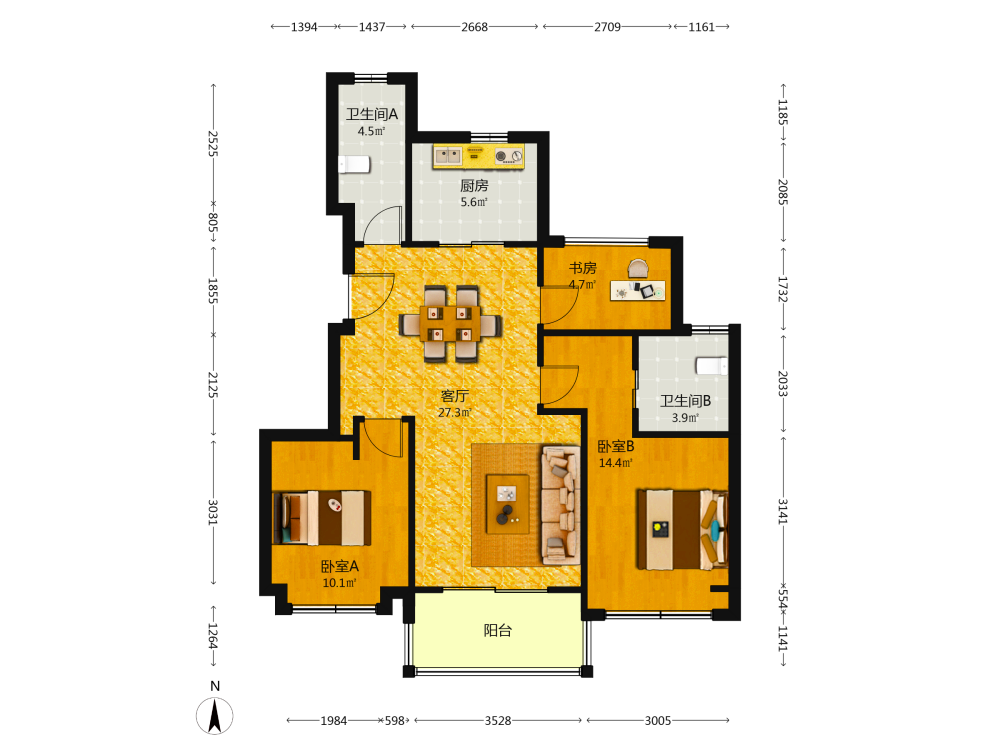 3室2厅2卫1厨1阳