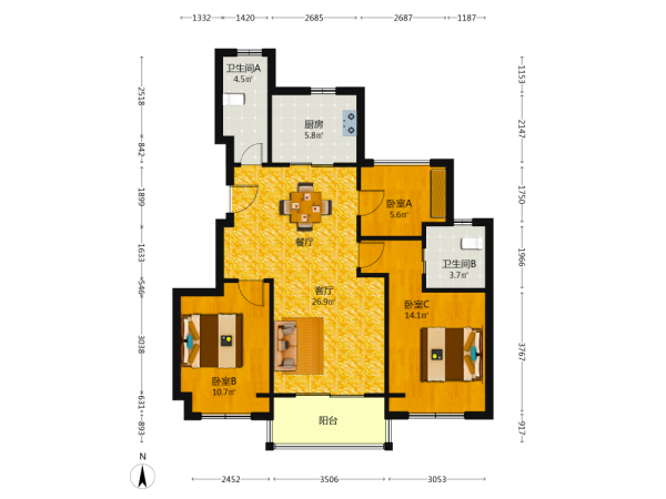 注:1.页面展示的"户型图、规划用途、产权性质、共有情况、建筑年代、产权年限、建筑结构、户型结构、电梯、供暖、上次交易、购房年限、抵押情况”等信息仅供参考,购房时请以房本信息为准。 2.与距离相关的数据来源于地图测量,仅供参考。
