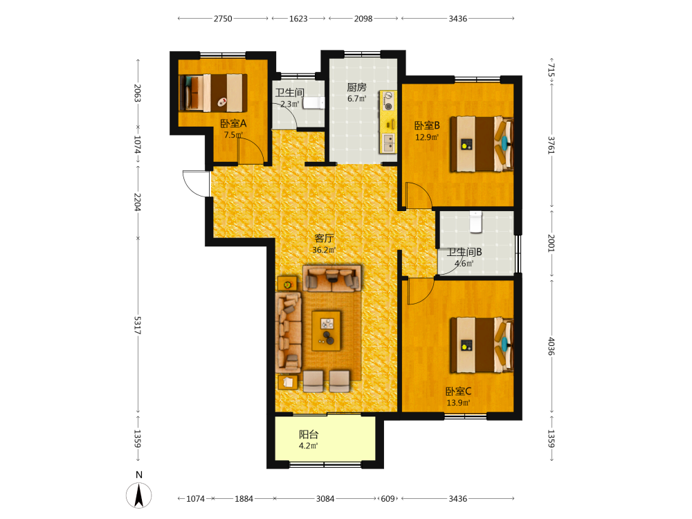 3室2厅