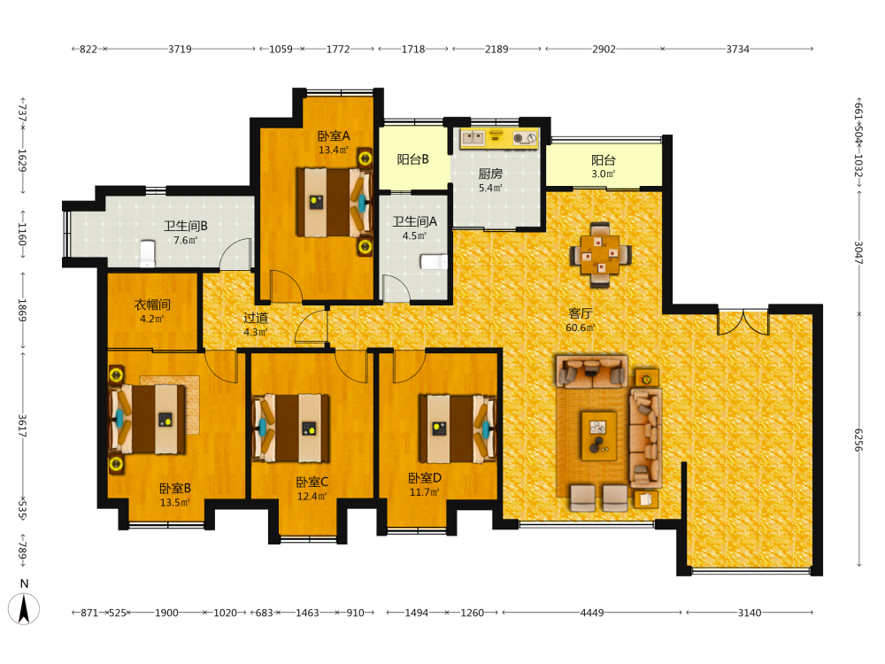 4室2厅2卫1厨1阳
