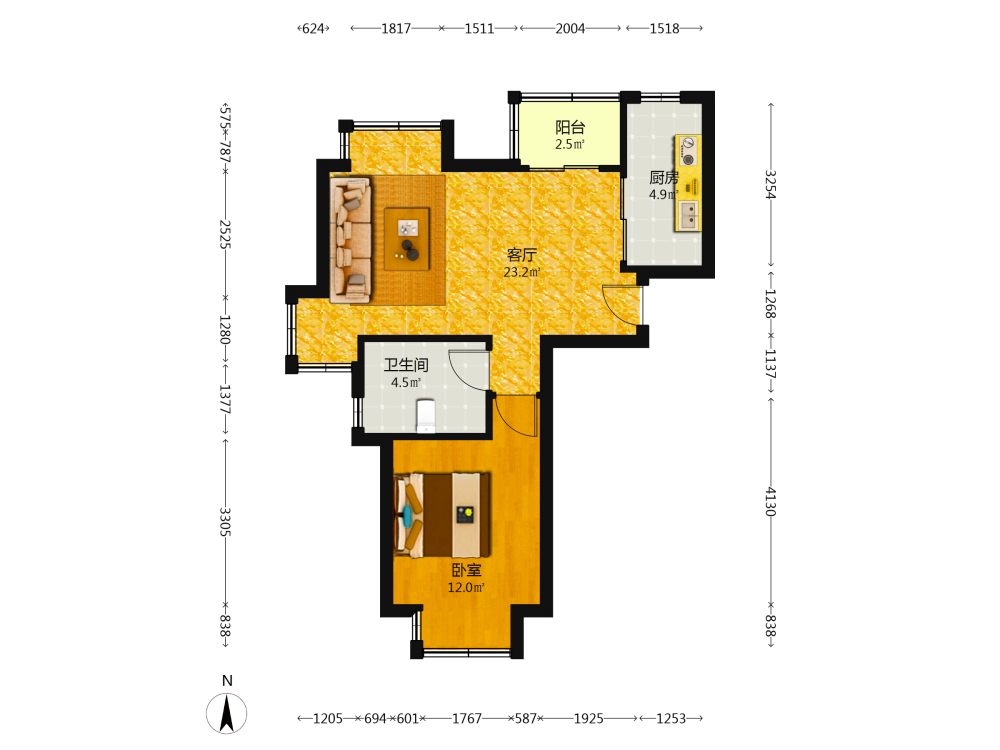 1室2厅1卫1厨1阳
