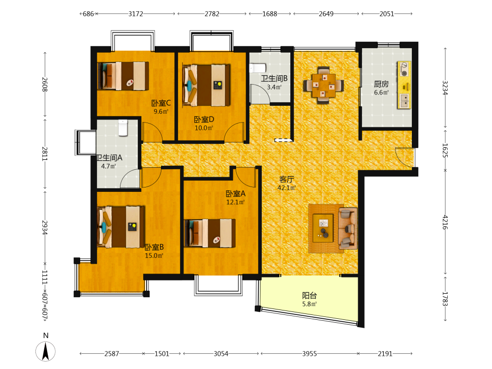 4室2厅2卫1厨1阳