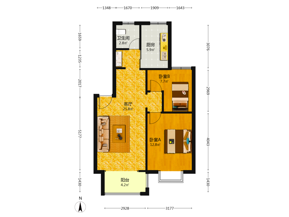 2室1厅1卫1厨1阳