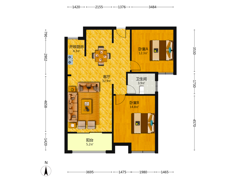 注:1.页面展示的"户型图、规划用途、产权性质、共有情况、建筑年代、产权年限、建筑结构、户型结构、电梯、供暖、上次交易、购房年限、抵押情况”等信息仅供参考,购房时请以房本信息为准。 2.与距离相关的数据来源于地图测量,仅供参考。