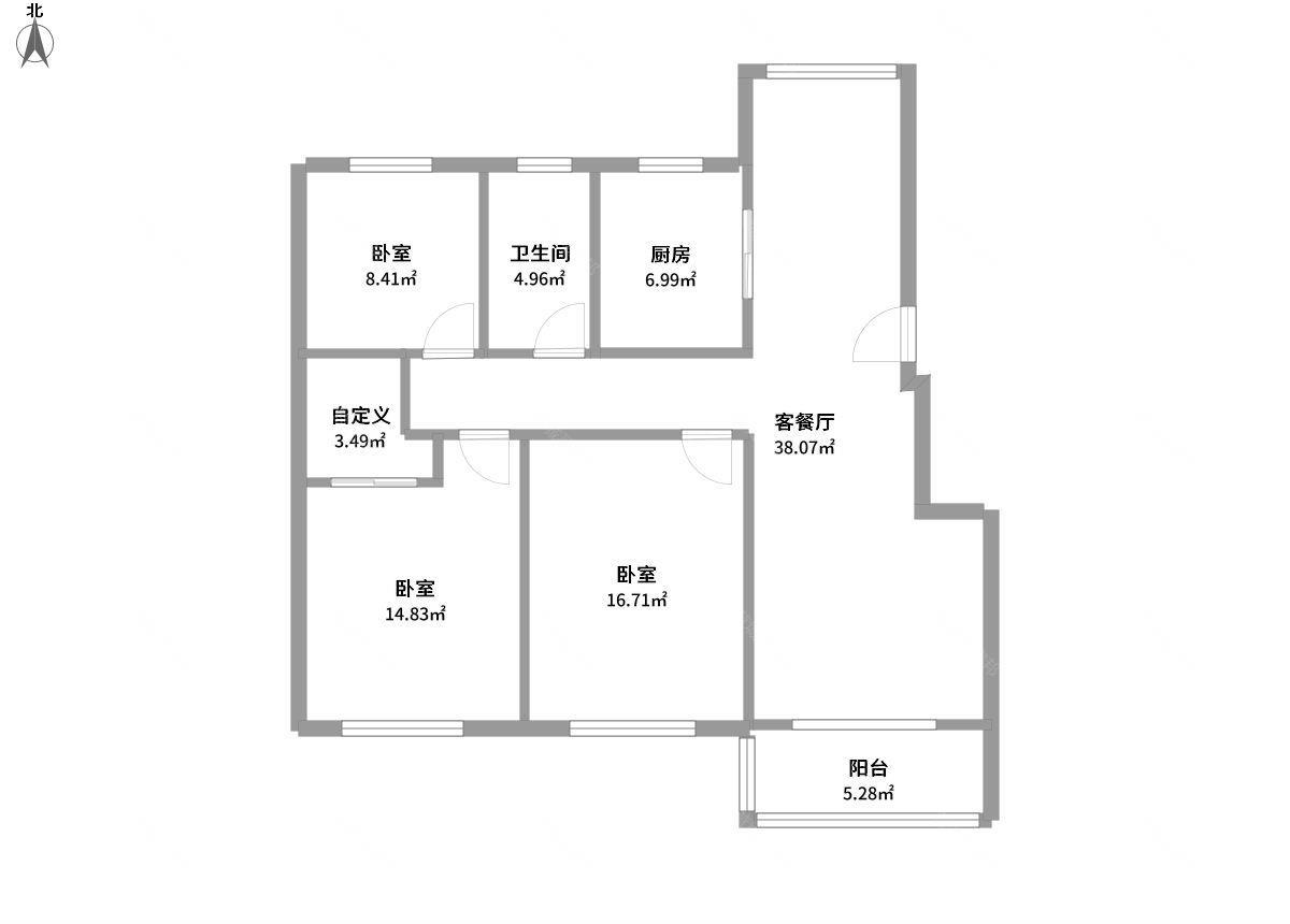3室2厅1卫1厨1阳