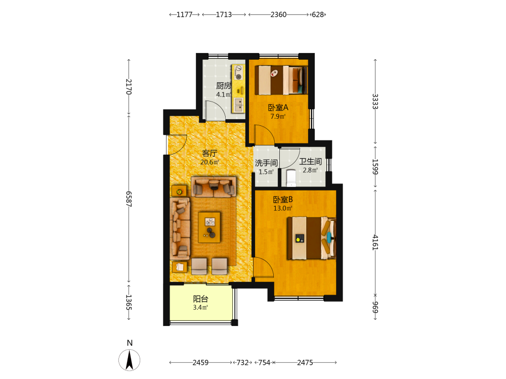 65.5平米