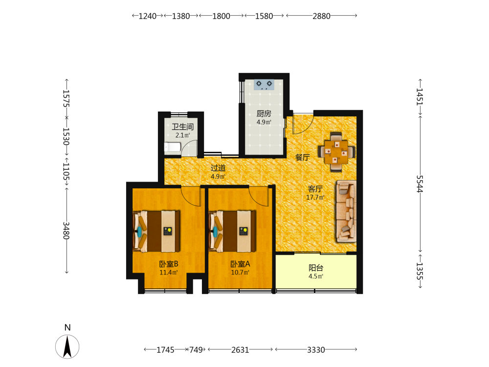 2室2厅1卫1厨1阳
