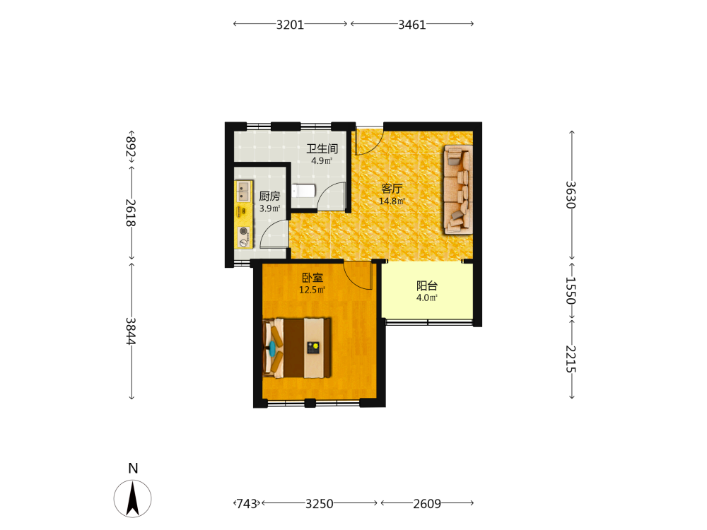 1室1厅1卫1厨1阳