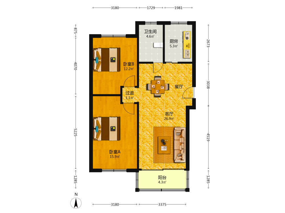 注:1.页面展示的"户型图、规划用途、产权性质、共有情况、建筑年代、产权年限、建筑结构、户型结构、电梯、供暖、上次交易、购房年限、抵押情况”等信息仅供参考,购房时请以房本信息为准。 2.与距离相关的数据来源于地图测量,仅供参考。