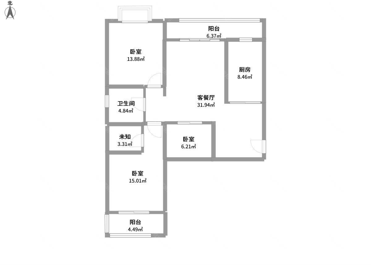 3室2厅1卫1厨1阳
