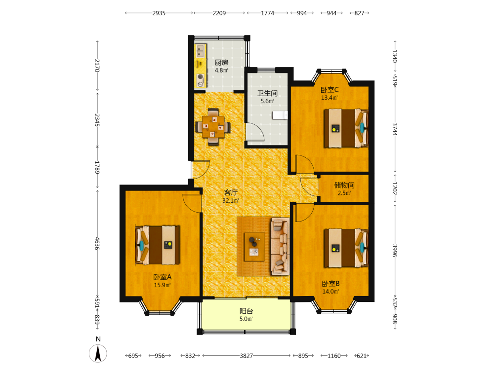 3室2厅