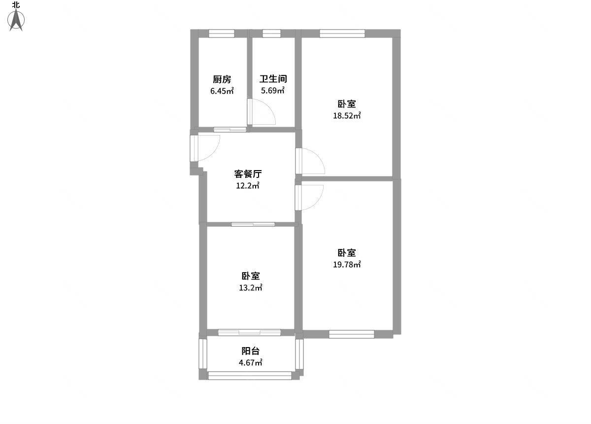 3室2厅1卫1厨1阳