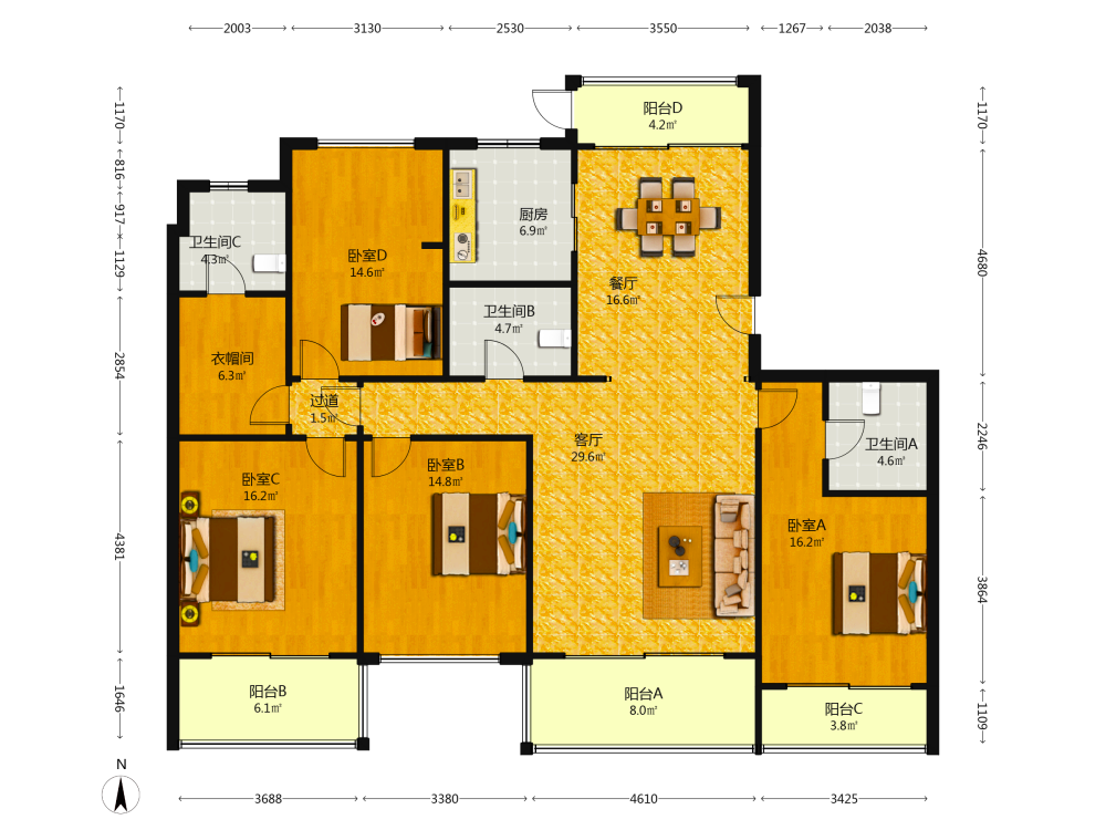 4室2厅1卫1厨1阳