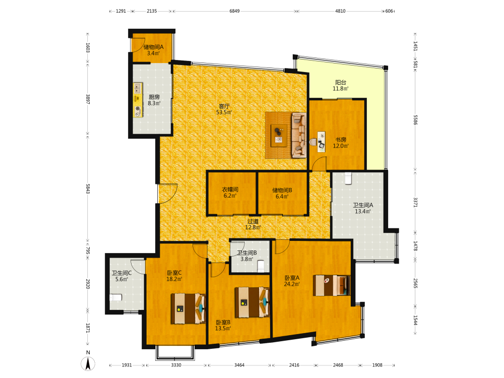 安信湖畔天地坊 4室1厅 231平米 960万出售