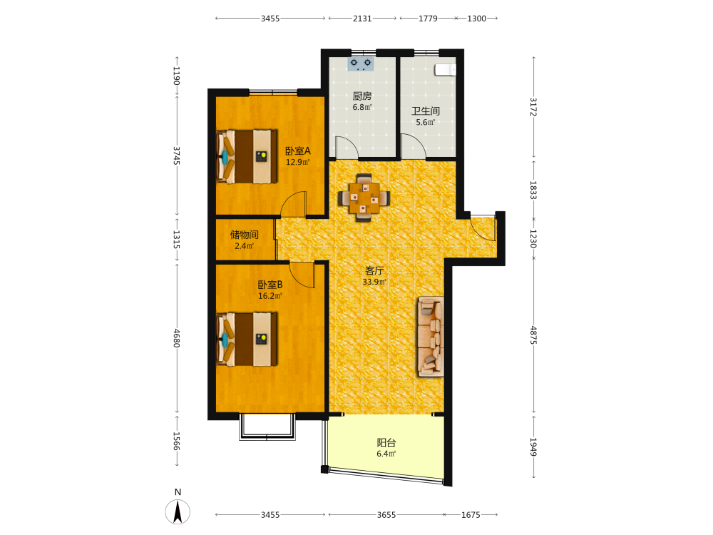 2室2厅1卫1厨1阳