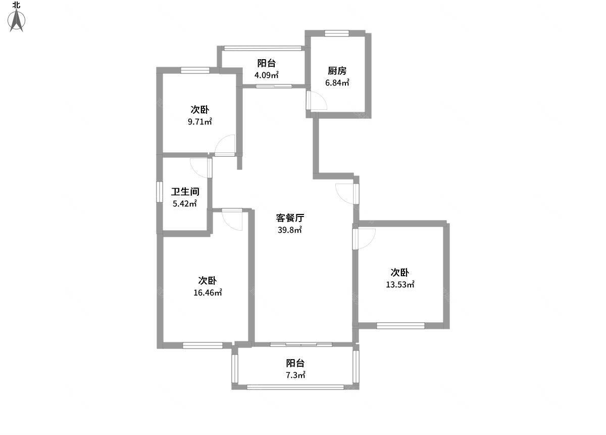 3室2厅1卫1厨1阳