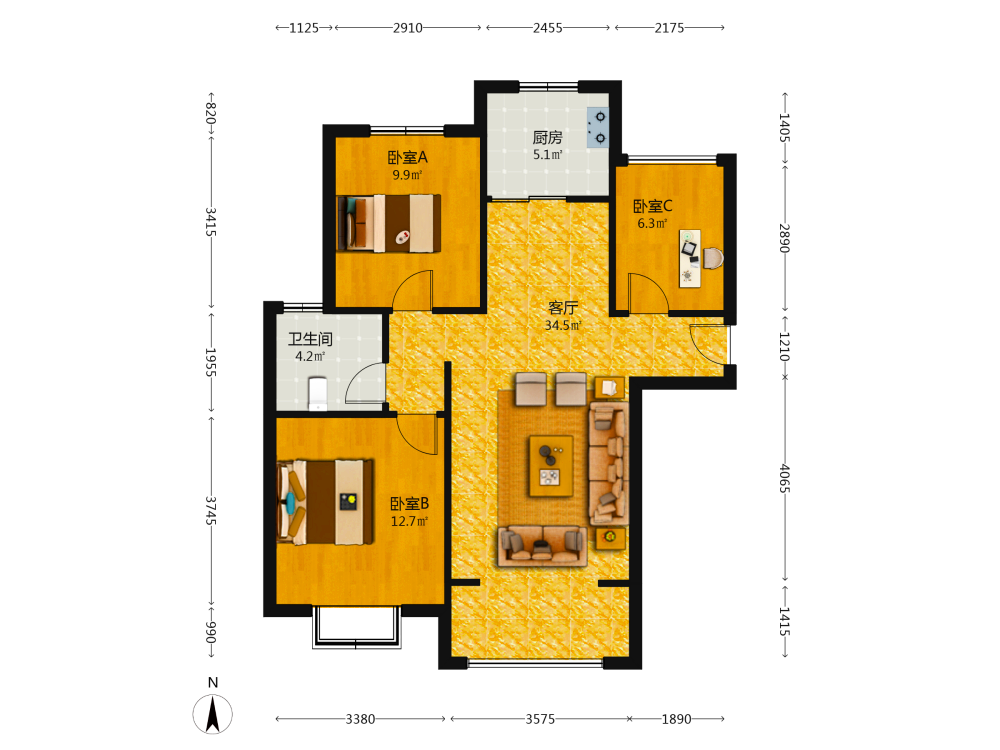3室2厅
