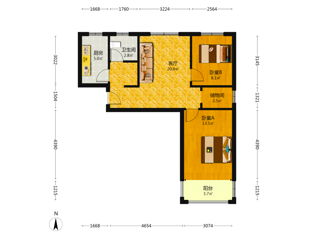 2室2厅1卫1厨1阳