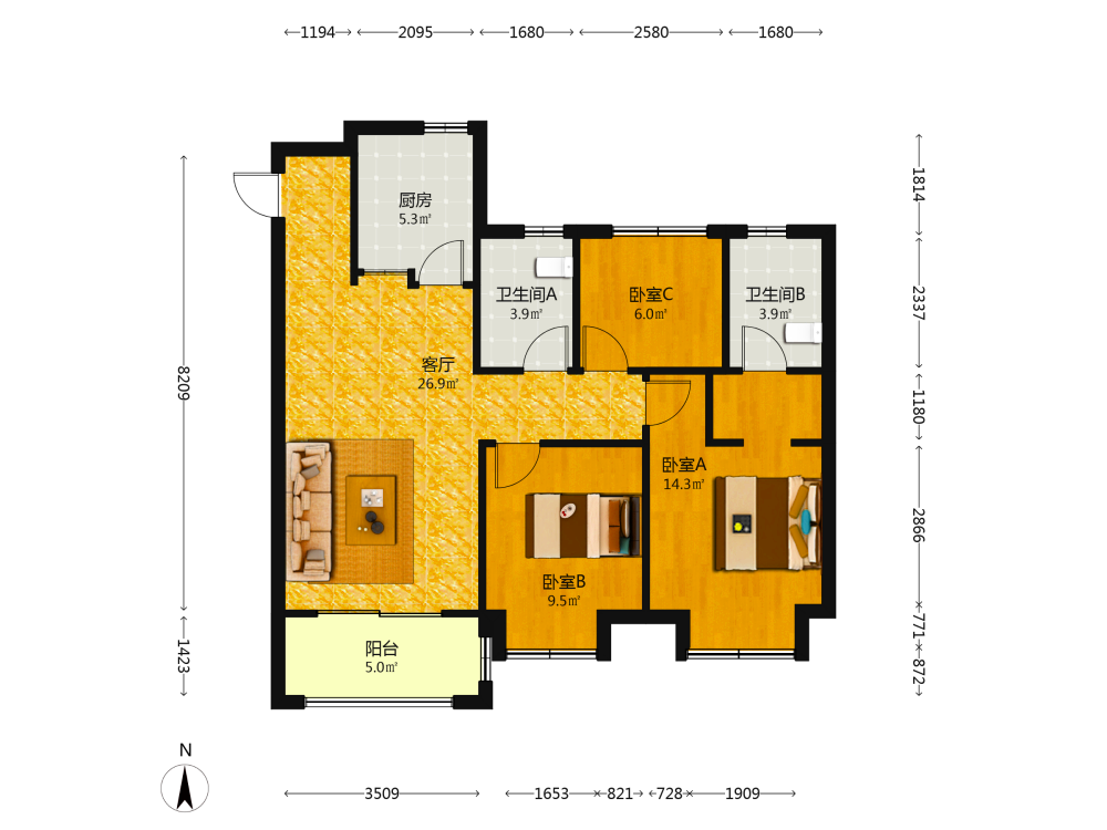 3室2厅