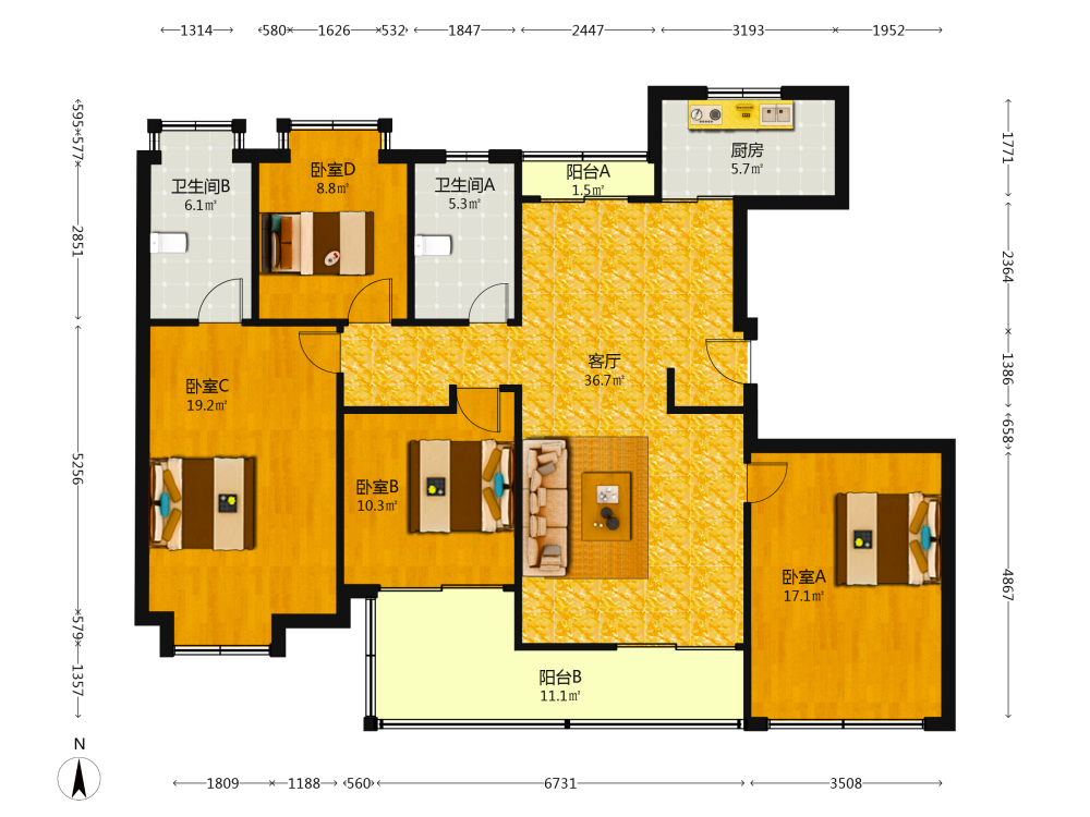 4室1厅1卫1厨1阳