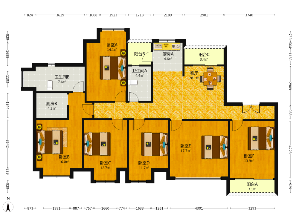 4室2厅1卫1厨1阳