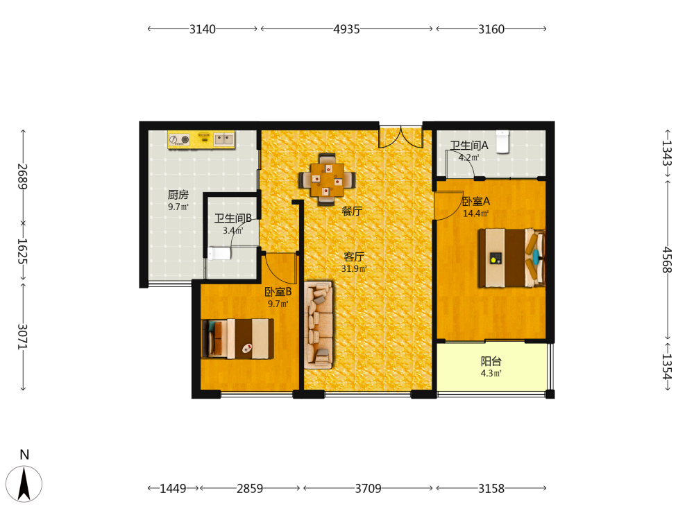 注:1.页面展示的"户型图、规划用途、产权性质、共有情况、建筑年代、产权年限、建筑结构、户型结构、电梯、供暖、上次交易、购房年限、抵押情况”等信息仅供参考,购房时请以房本信息为准。 2.与距离相关的数据来源于地图测量,仅供参考。