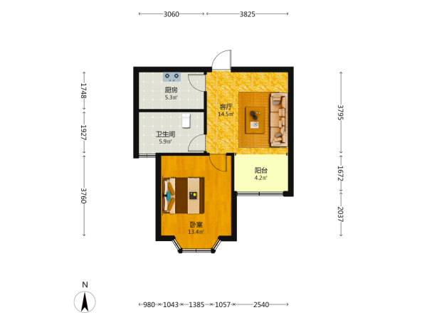 1室1厅1卫1厨1阳