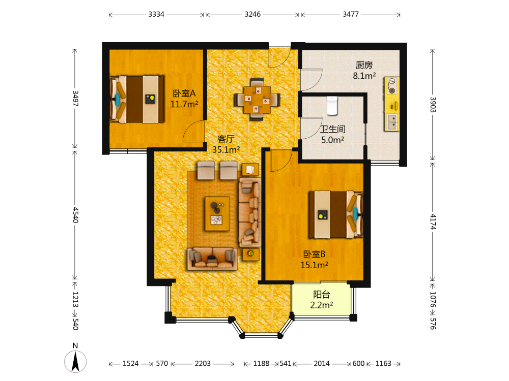 2室2厅1卫1厨1阳