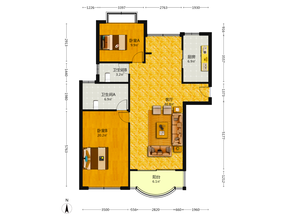 2室2厅1卫1厨1阳