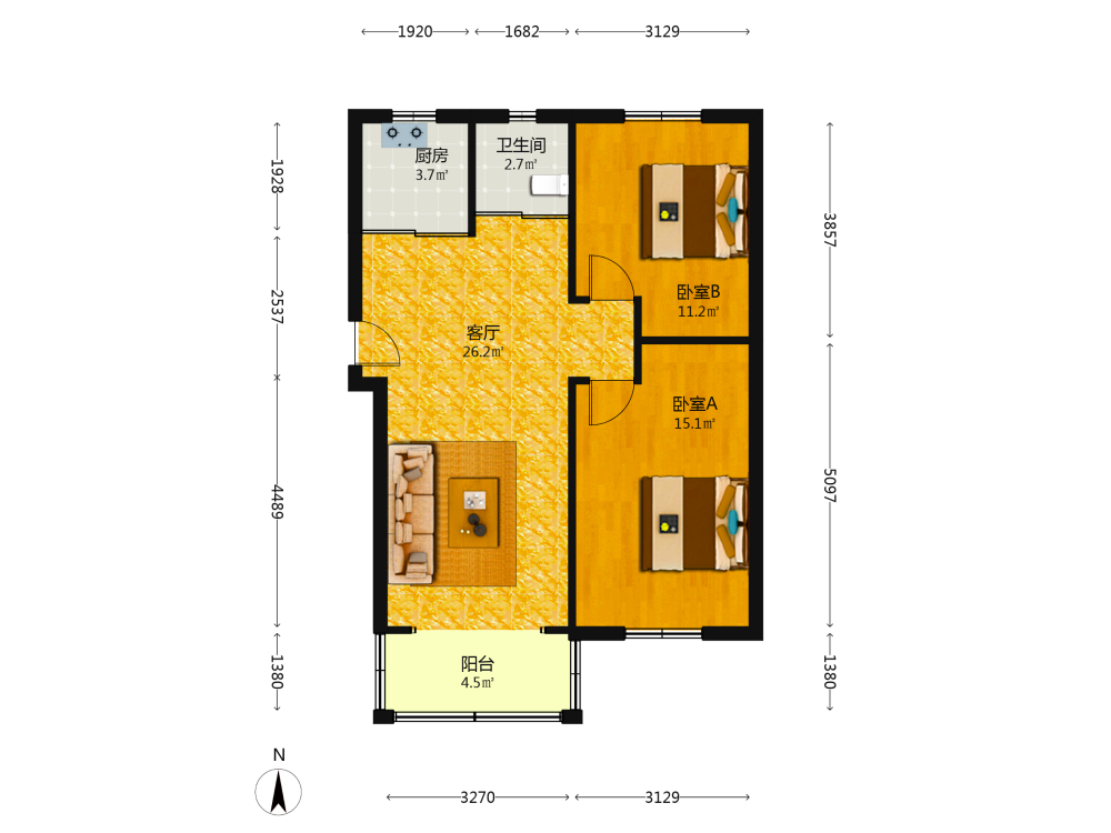 2室2厅1卫1厨1阳