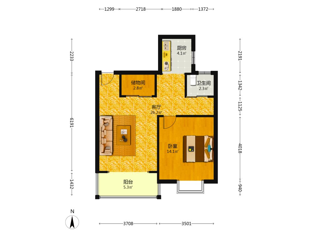 1室1厅1卫1厨1阳